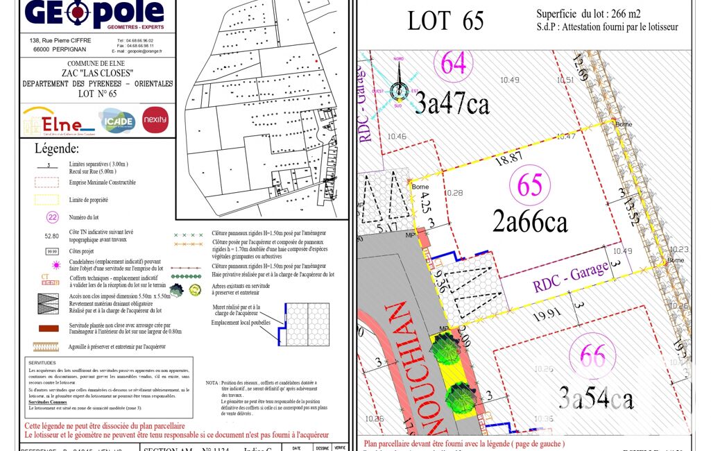 iad France - Franck Le Gall vous propose: Terrain à bâtir viabilisé – 266 m² – Elne