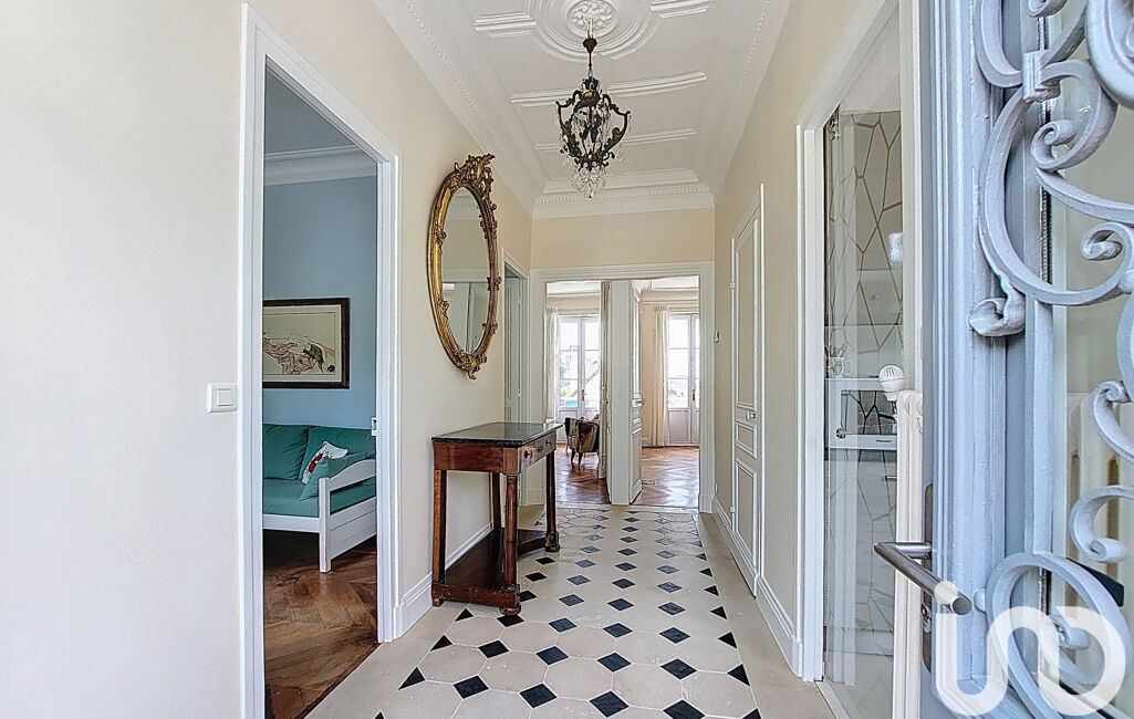 iad France - Xavier Noury vous propose: A 50 minutes de Paris, au sein du vieux bourg de Saint-Germain-Lès-Corbeil, cette magnifique maison de maître de la fin du 19ème siècle allie charme et caractère. Elle est implantée sur un terrain de 780 m², clos de murs en pierres, joliment arboré et offrant une grande cour à l’avant permettant de garer plusieurs véhicules.