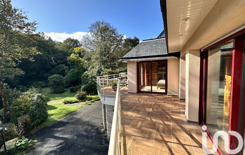 Nichée dans un écrin de verdure, cette somptueuse demeure d’architecte de 310 m² (total 373 m² + balcon 50 m²) vous invite à vivre dans un cadre enchanteur, où le doux murmure d’un ruisseau traverse un parc paysagé d’environ 1 hectare. Située à seulement 7 minutes du centre-ville de Quimper, à 5 minutes des écoles, collèges et commerces, et à 20 minutes des plages et de l’aéroport, elle combine à la perfection calme absolu et proximité des commodités.