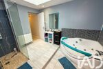 À l’étage, un palier dessert deux grandes chambres d’environ 20 m² chacune, bénéficiant chacune de leur salle de bains et d’un espace dressing.