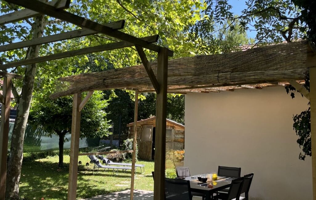 Au Rez-de-chaussée: un sejour moderne, une cuisine intégrée Bosch, un wc suspendu, une chambre, une cuisine d'été.