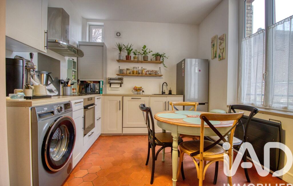 D’une superficie d’environ 80 m², cet appartement aux allures de maison indépendante séduit par son cachet de l’ancien : parquet en chevron, carreaux de ciment et belle hauteur sous plafond.