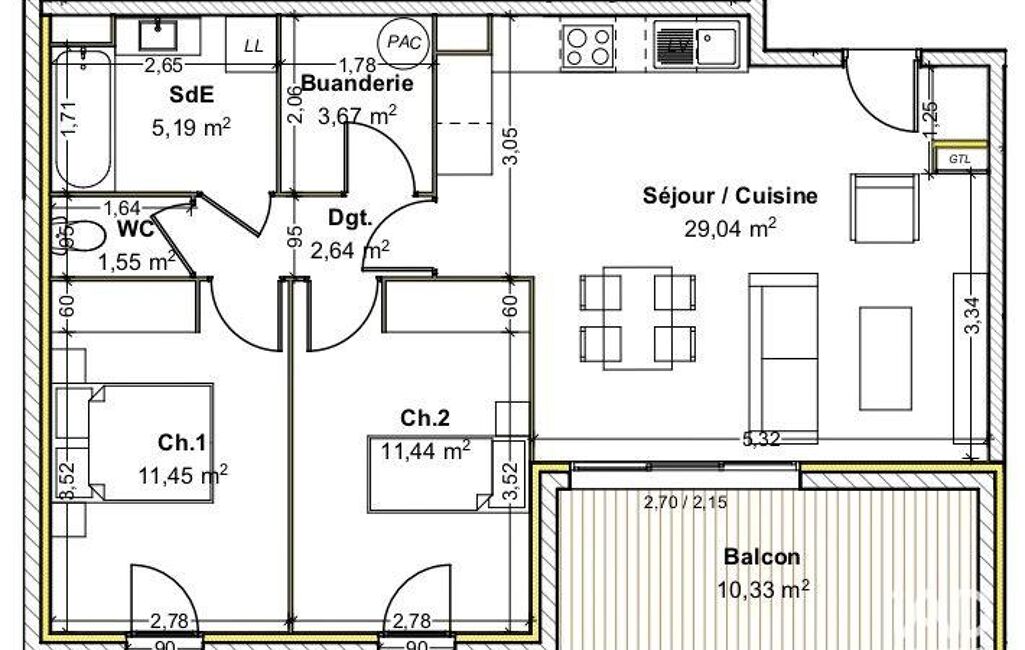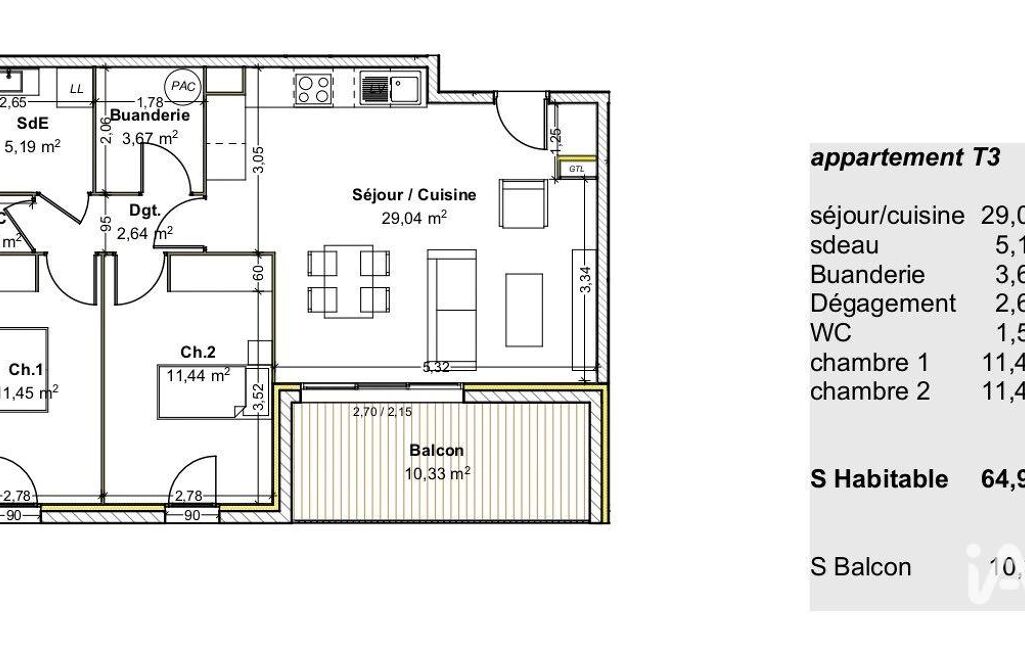 • Surface habitable : 64 m²