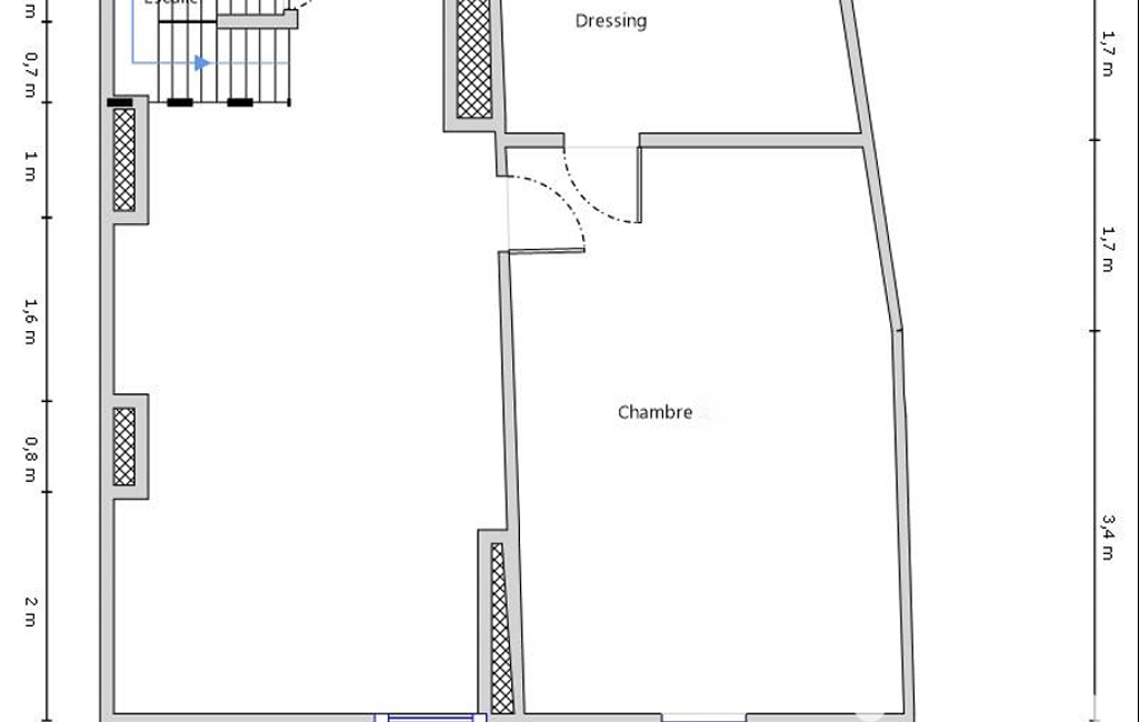 Au rez-de-chaussée, l'entrée se fait par le double séjour qui donne accès à une cuisine ouverte à aménager, une pièce aveugle pouvant être aménagée en chambre - une salle d'eau - et un WC.