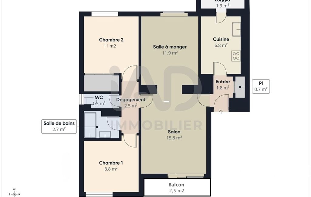 iad France - Amandine Lopes vous propose: — Quartier du Mont Mesly — 2 CHAMBRES - 3ÈME CHAMBRE POSSIBLE - AUCUN TRAVAUX - LOGGIA - BALCON et CAVE !