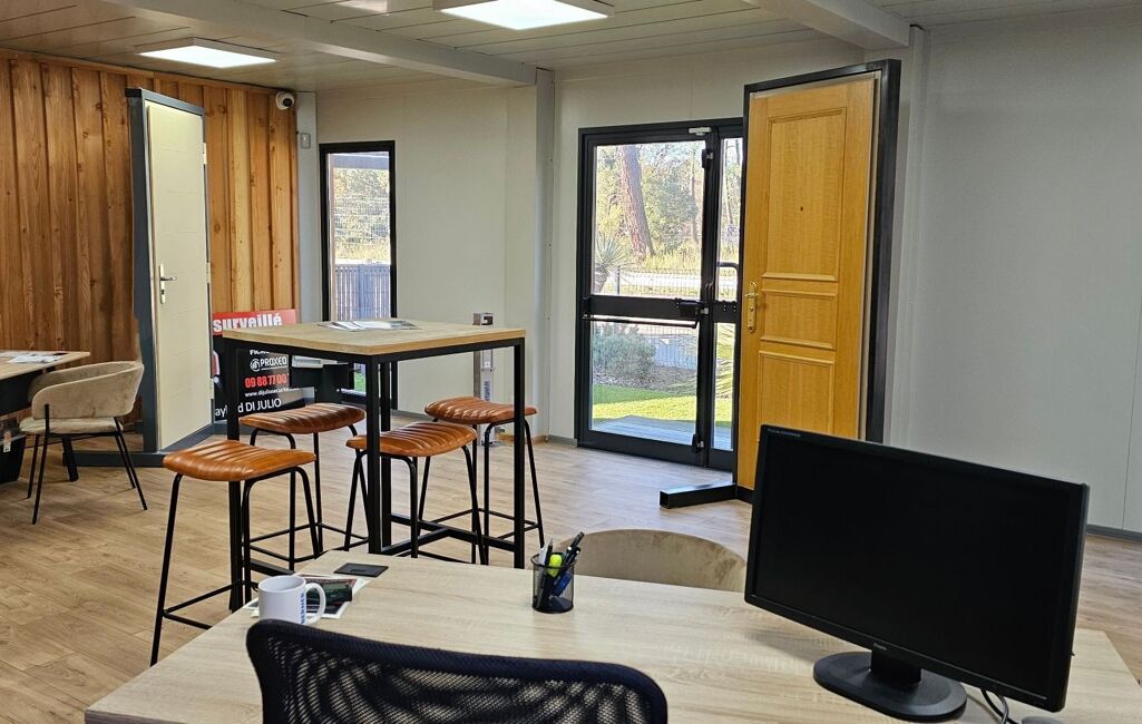 •Un « container » bureau indépendant (48 m² environ), aménagé en open-space avec sanitaires,