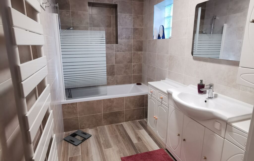 une salle de bain et un WC séparé.