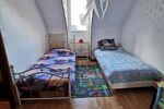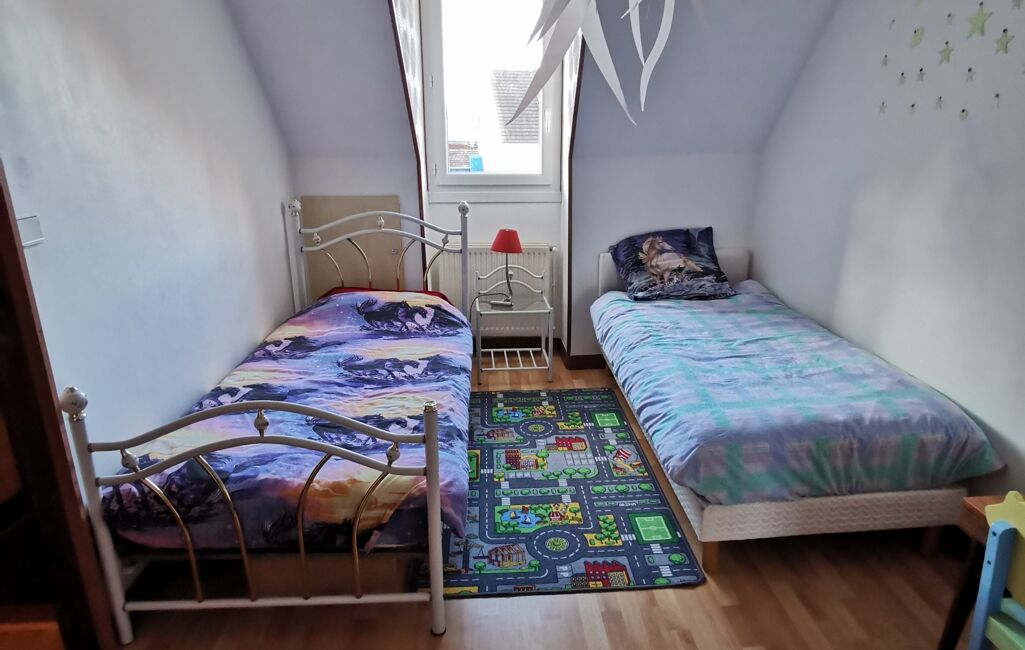 À l'étage, vous découvrirez un palier desservant deux chambres dont une pièce supplémentaire en enfilade pouvant servir de bureaux ainsi qu'un WC.