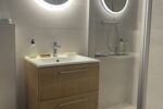Quatre chambres dont trois au RDC, deux salles d’eau avec WC, une salle de bains et un WC indépendant au RDC.