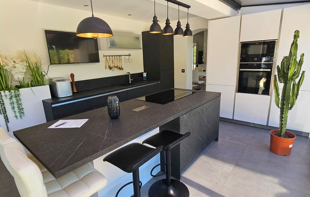 La cuisine, équipée et récente, est un espace convivial où il fait bon se retrouver en famille ou entre amis. Les matériaux nobles et les finitions de qualité apportent une touche d'élégance à cette pièce centrale de la maison.