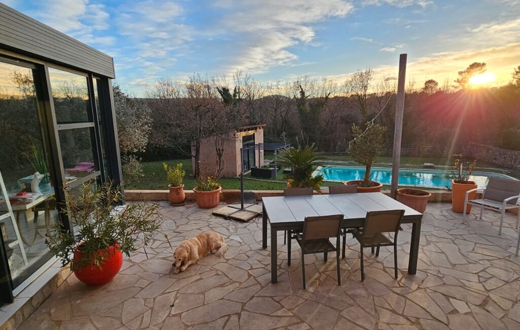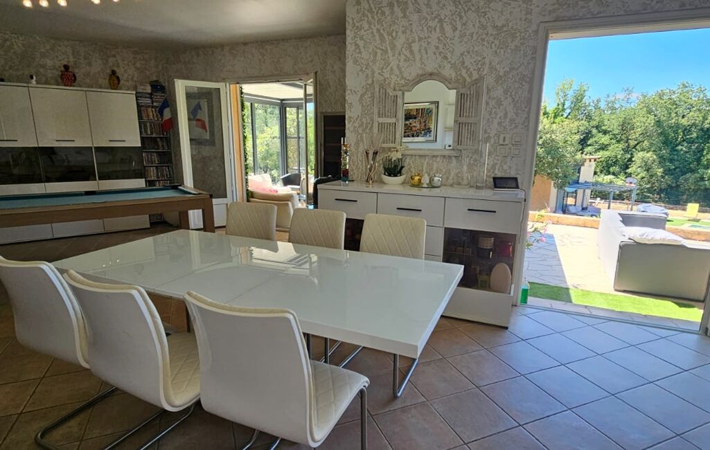 Vous découvrirez un espace de vie spacieux et lumineux ou une pergola bio thermique y a été ajouté.