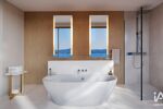 L’étage accueille quatre chambres, toutes de belles dimensions. Chacune bénéficie de sa propre salle de bains ou salle d’eau ainsi que de rangements ou dressings. Elles s’ouvrent sur une large terrasse, offrant des vues dégagées sur la mer et les collines, et assurant une véritable continuité extérieure.
