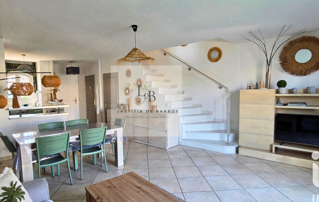 Répartie sur plusieurs niveaux, elle offre une distribution harmonieuse et fonctionnelle. Dès l’entrée, vous découvrirez une agréable pièce de vie réunissant salon, séjour et cuisine, prolongée par une belle terrasse de 32 m², véritable extension naturelle de l’espace de réception. L’ensemble compose un espace de vie chaleureux, agréable à vivre au quotidien et parfaitement ouvert sur l’extérieur.