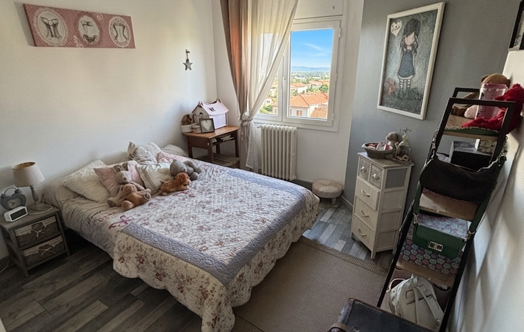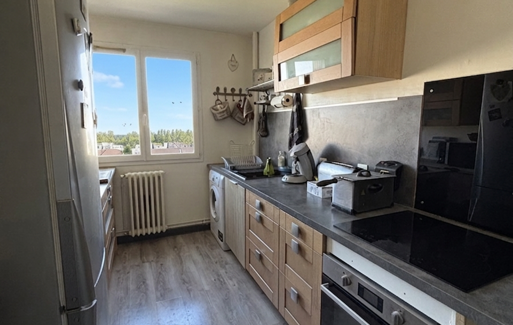 Dès l'entrée, on découvre un séjour spacieux et baigné de lumière, donnant accès à un balcon offrant une vue dégagée et peu de vis-à-vis. La cuisine aménagée, séparée, offre un espace fonctionnel et agréable.