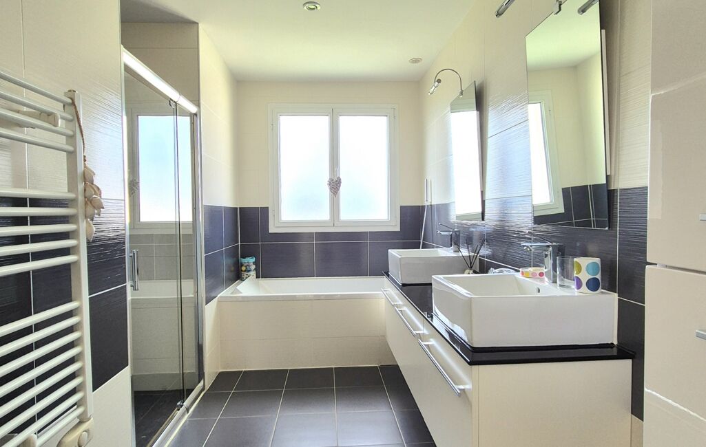 Vous serez séduits par ses beaux espaces extérieurs, avec une grande terrasse en rez-de-chaussée de 150m2 en partie couverte, ainsi qu’une seconde terrasse à l’étage, toutes deux ouvertes sur une vue dégagée et verdoyante. Vous profiterez également d’une superbe piscine, à fond plat et au sel.