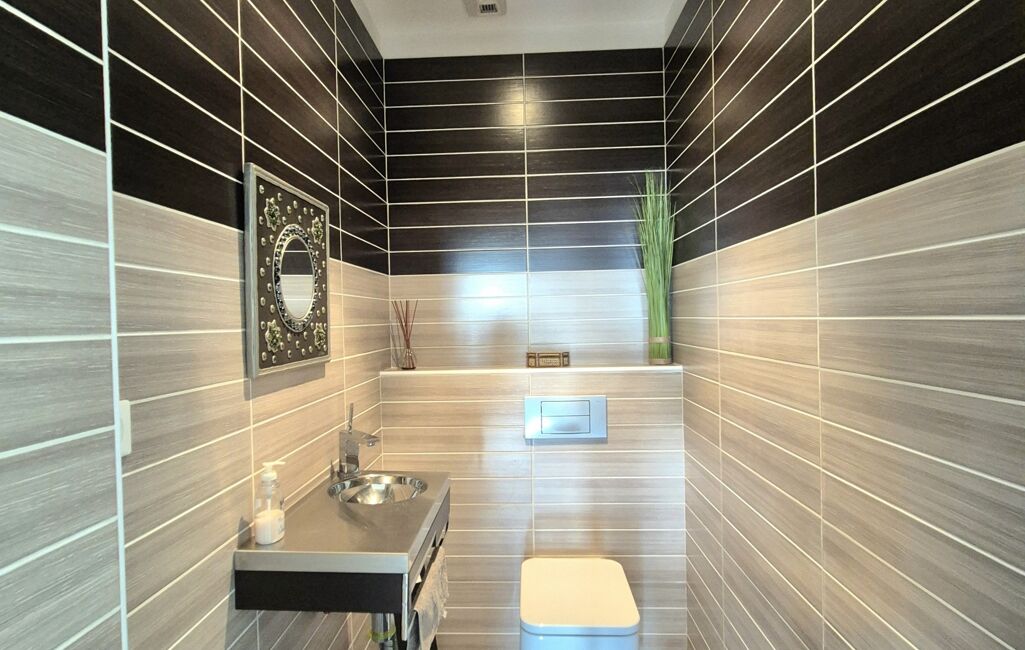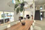 Au rez-de-chaussée, la maison propose une spacieuse pièce de vie baignée de lumière, hauteur cathédrale, un salon chaleureux et une cuisine ouverte, aménagée et entièrement équipée (par un cuisiniste local haut de gamme). Une arrière-cuisine avec espace buanderie complète cet espace. Ce niveau comprend également trois belles chambres, trois salles d’eau avec wc et un WC indépendant.