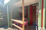 La maison est en rez-de-rue avec une petite terrasse couverte de type loggia, une entrée, une cuisine, un petit salon et une réserve.