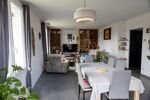 Au premier étage, la maison offre une grande pièce de vie lumineuse avec salon, salle à manger et cuisine ouverte, deux grandes chambres avec placards, une salle de bains et un WC indépendant.