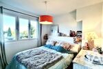 À l’étage, l’espace nuit comprend une grande chambre avec dressing, une chambre supplémentaire et une salle de bain avec WC. La grande chambre peut aisément retrouver sa configuration d’origine pour créer une troisième chambre, selon les besoins de la famille.
