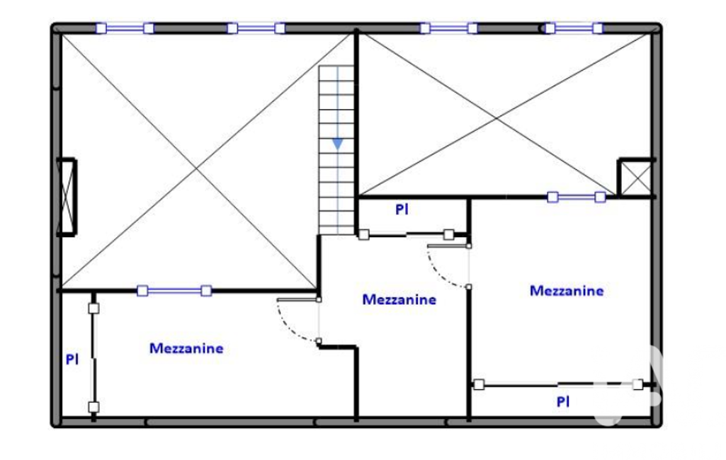 Un escalier intérieur mène à une mezzanine de 28 m² au sol (hors loi Carrez) offrant de nombreuses possibilités d’aménagement.