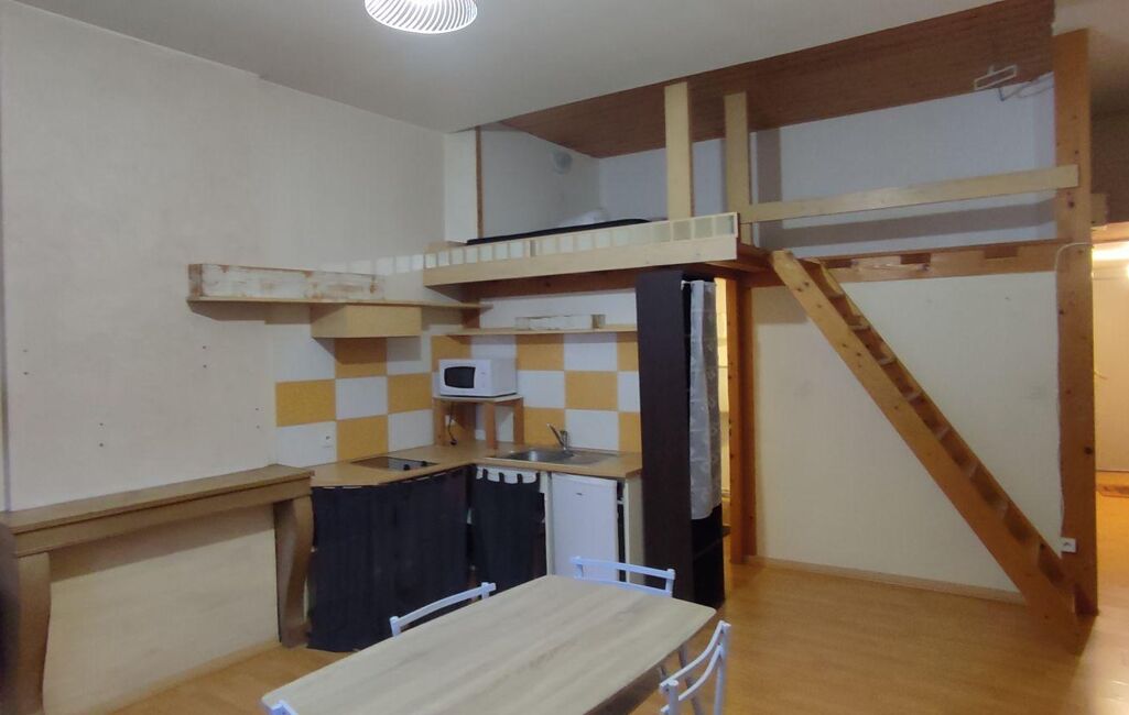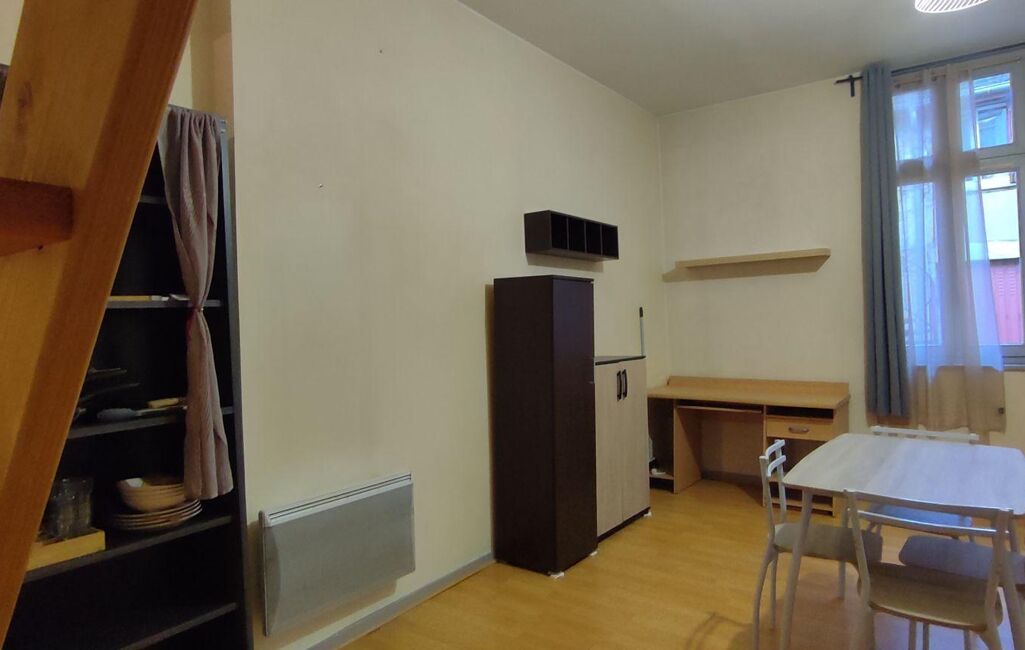 Un studio fonctionnel, meublé et prêt à vivre, dans un emplacement central avec toutes les commodités au pied de l’immeuble.