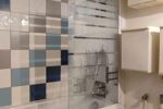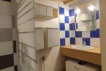 La salle de bain dispose d’une baignoire, d’un meuble vasque avec miroir, tandis que les toilettes sont séparées pour plus de confort.