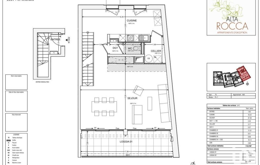 - Surface habitable : 119 m²