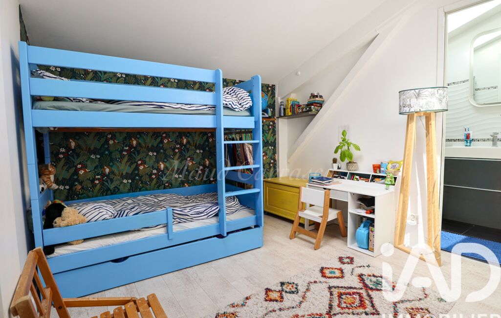 À l’étage, l’espace nuit comprend deux chambres lumineuses et calmes, une salle de bain avec douche et baignoire, ainsi que des WC séparés.