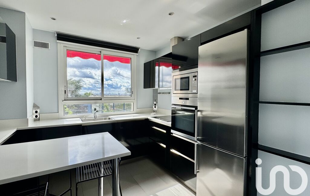 La cuisine moderne est aménagée et équipée.