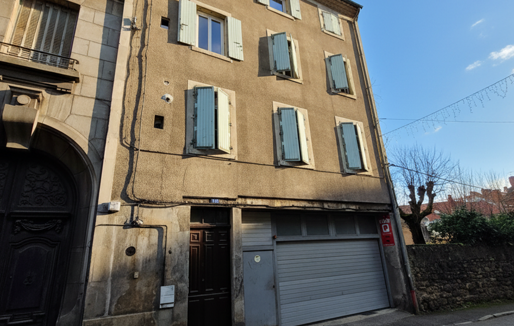 iad France - Rommy Dubief vous propose: ANNONAY -Immeuble de rapport à vendre idéalement situé en centre-ville d’Annonay, développant environ 230 m² habitables répartis sur quatre appartements, auxquels s’ajoutent environ 220 m² de garage au rez-de-chaussée. Cet ensemble constitue une opportunité d’investissement rare par ses volumes, son emplacement et sa rentabilité.