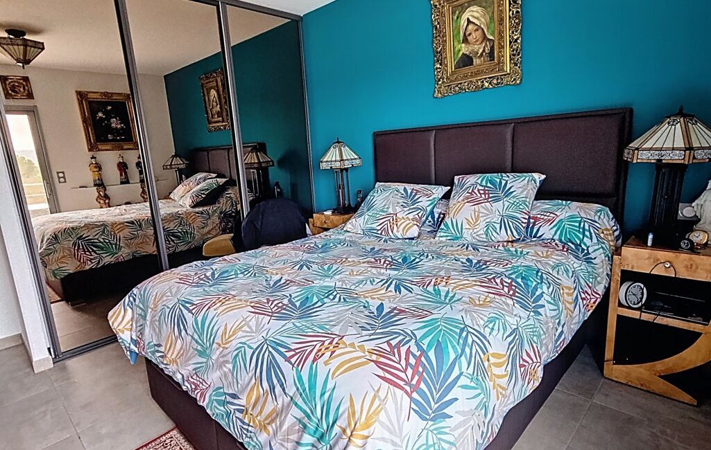 Il se compose d’une grande pièce de vie lumineuse, d’une cuisine équipée, de deux chambres, d’une salle d’eau, ainsi que de nombreux placards de rangement intégrés,