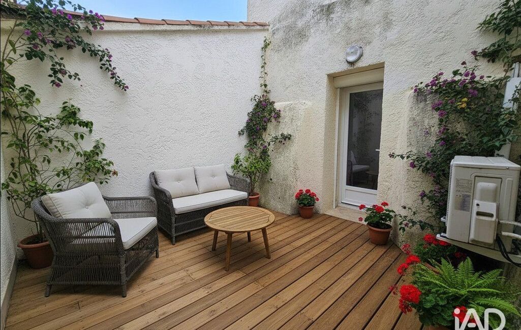 Elle offre une pièce de vie avec salon, séjour et cuisine ouverte, deux terrasses (dont une patio de 12 m² environ sans vis-à-vis), une salle d’eau avec toilettes, ainsi que deux chambres confortables.