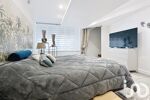* Une suite parentale disposant d'une salle de bain avec une douche moderne, un meuble double vasque, une baignoire et des toilettes suspendues