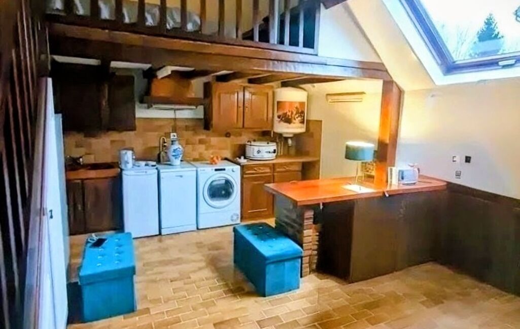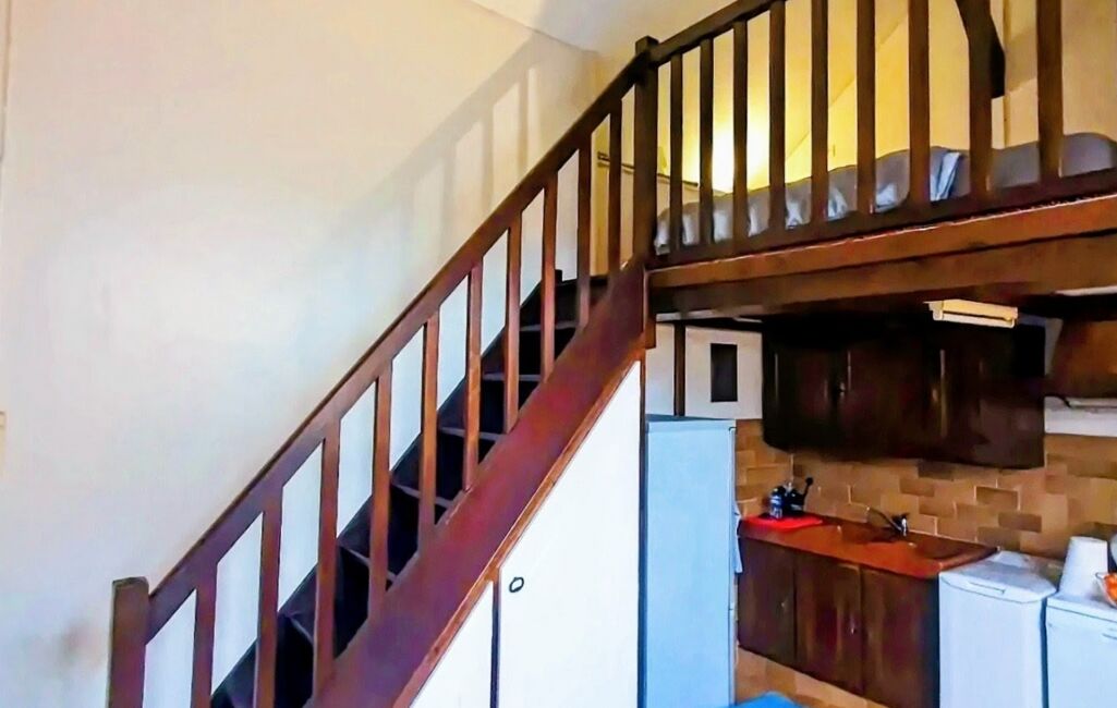 iad France - Sophie Menant vous propose: Pontoise – Centre-ville, appartement studio de 25 m² situé au 2ᵉ et dernier étage d’un immeuble en centre-ville. Il se compose d’un espace de vie regroupant séjour et salon, d’un coin cuisine équipé (lave-vaisselle, sèche-linge, lave-linge, double évier, réfrigérateur et congélateur), ainsi que d’une mezzanine permettant d’aménager un espace nuit distinct. Des rangements sont intégrés. Les poutres apparentes apportent un caractère chaleureux à l’ensemble. Situé en hyper centre, à proximité immédiate des commerces et de la gare, l’appartement bénéficie d’un environnement calme.
