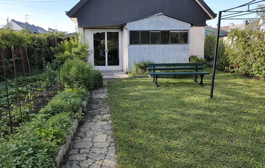 Cette maison des années 70, mitoyenne, développe plus de 114 m² habitables sur une parcelle de plus de 300 m², offrant de nombreuses possibilités d’aménagement.