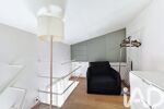 Par un escalier, vous accédez à l'espace nuit, en surplomb du salon avec rangements amanégés.