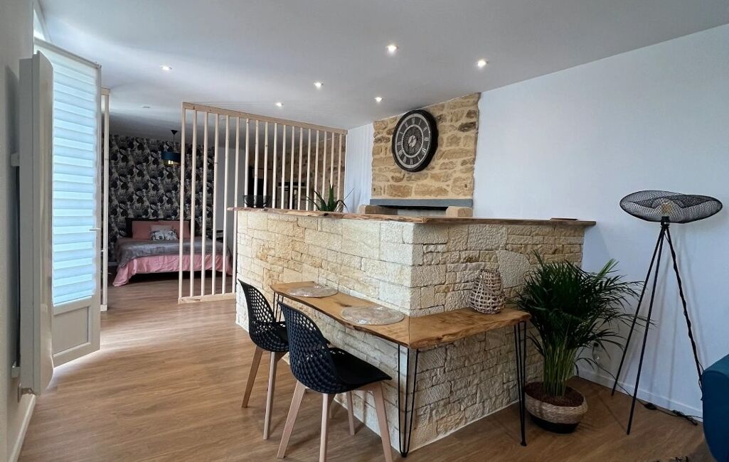 Un appartement indépendant d’environ 40 m², situé en rez-de-jardin sous la première maison, comprend une cuisine ouverte avec espace repas, un séjour, une chambre, ainsi qu’une salle d’eau avec WC. Une jolie terrasse avec vue sur le jardin vient parfaire cet espace. L'appartement est actuellement loué en location saisonnière avec une bonne rentabilité.