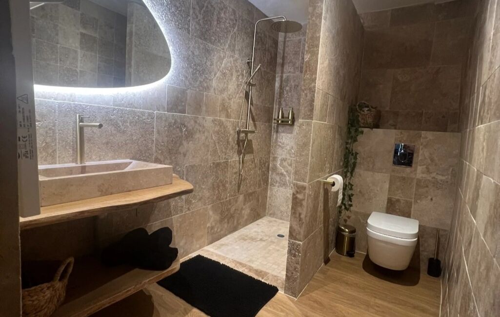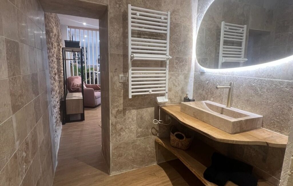 La première maison, d’environ 95 m², offre des prestations de qualité avec trois chambres, dont une suite parentale disposant de sa salle d’eau privative et d'un WC, une salle d’eau avec douche à l'italienne, un WC indépendant, ainsi qu’une cuisine. Les espaces de vie, lumineux et harmonieusement agencés, garantissent confort et intimité. L’ensemble a été aménagé avec soin, alliant subtilement modernité et charme de l’ancien.