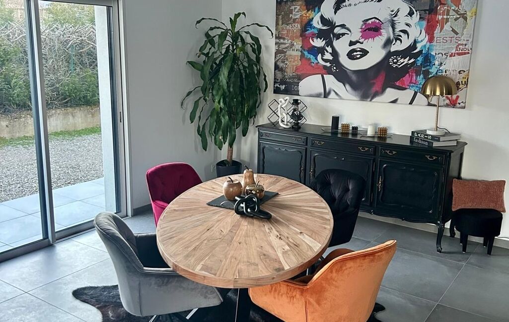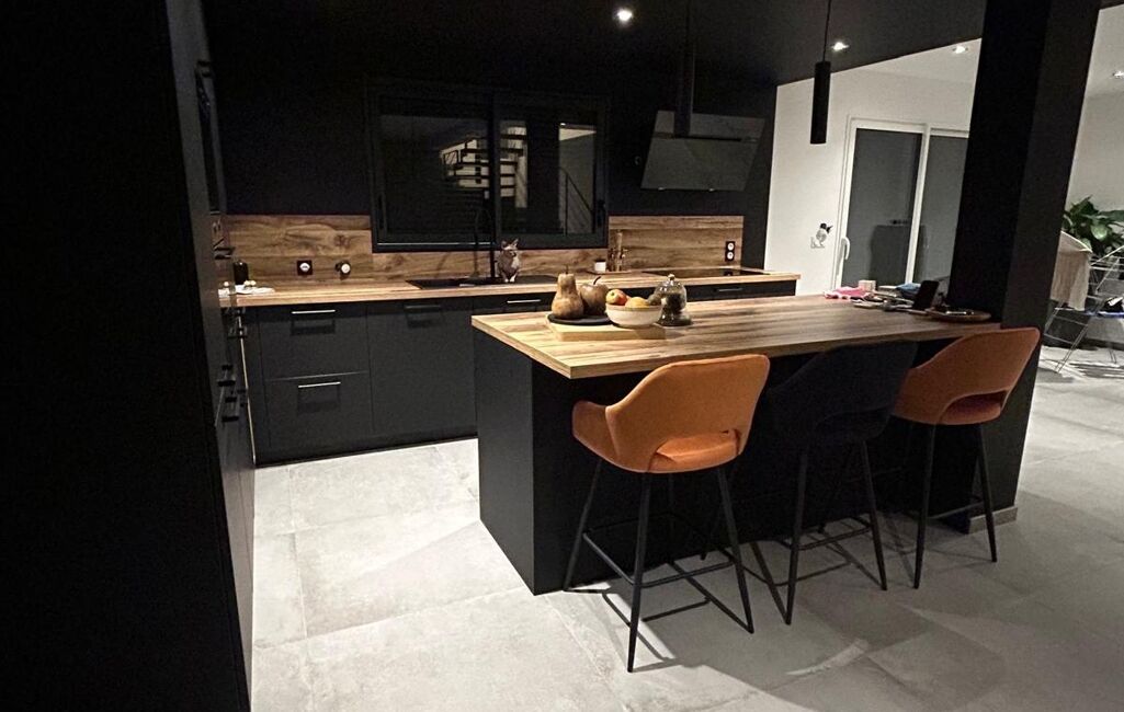 La cuisine, entièrement équipée, s’intègre parfaitement à cet espace de vie convivial, idéal pour recevoir.