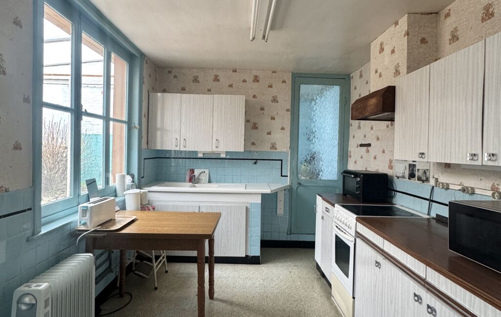 D’un point de vue technique, toiture atelier zinc récente, toiture principale tuiles en bon état, fibre optique, tout-à-l’égout, certaines menuiseries sont déjà en double vitrage, raccordement Gaz, chauffage électrique. Travaux à prévoir à minima : électricité complète et rénovation globale de la décoration.