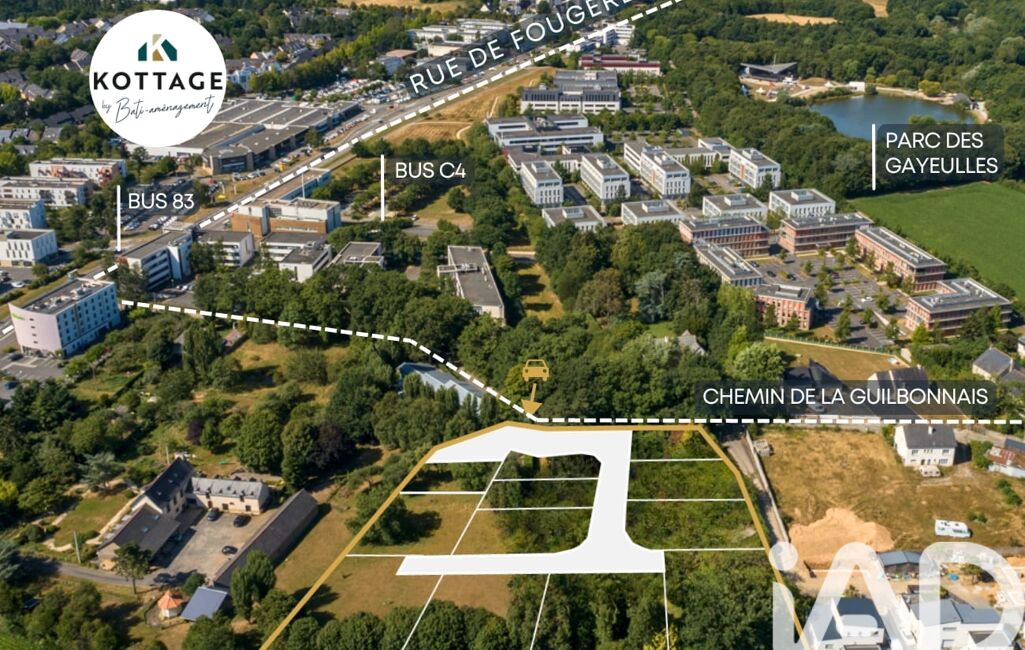 À deux pas de Rennes et du parc des Gayeulles, découvrez le lot n°8, un terrain plat et viabilisé, situé dans le nouveau quartier Kottage.