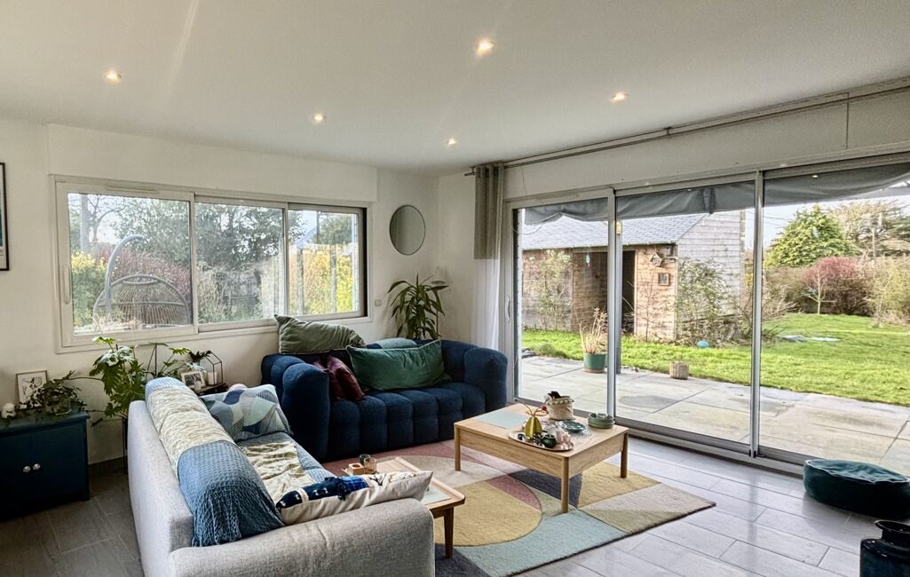 -un salon cosy et lumineux donnant sur la terrasse et son jardin