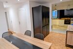 Dans les parties communes ( tout le mobilier et électroménager neufs), cuisine aménagée/équipée, salon,/séjour ( tables, chaises, canapé, TV), 2 WC, 1 salle d'eau et une SDB, fibre, lave linge, sèche linge, 2 réfrigérateurs