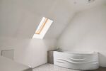 A l'étage (état neuf), l'espace nuit se compose de trois chambres sous comble, une salle de bain(baignoire)/wc, ainsi qu'une grande mezzanine lumineuse de 30m².