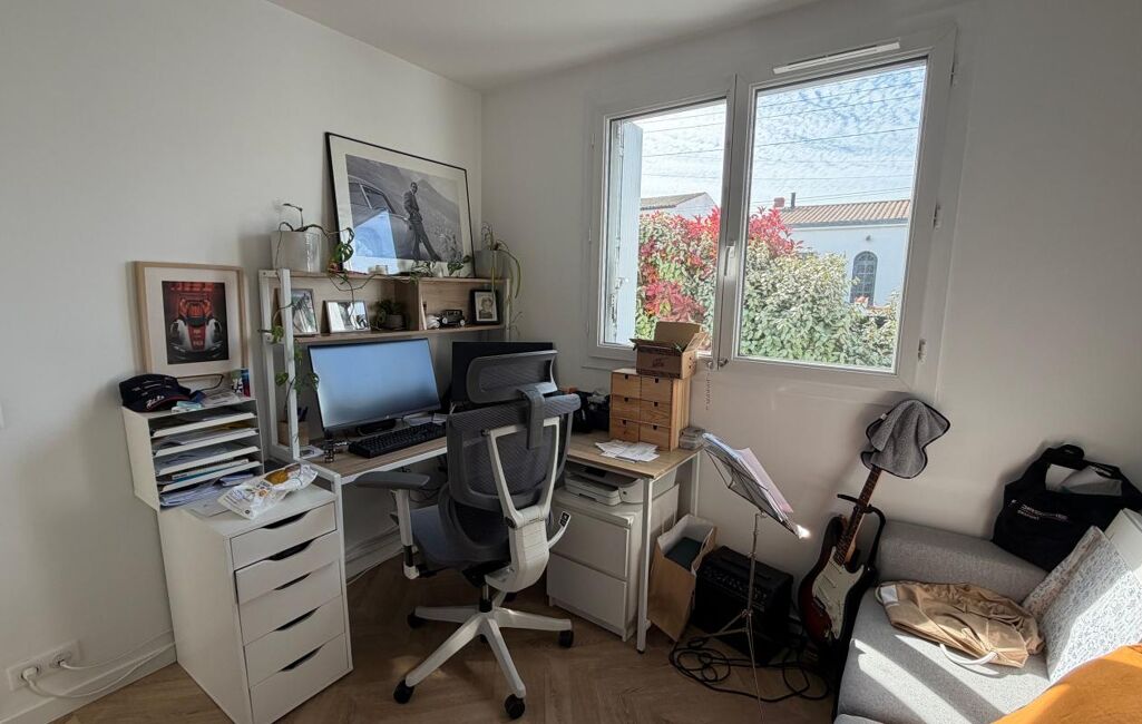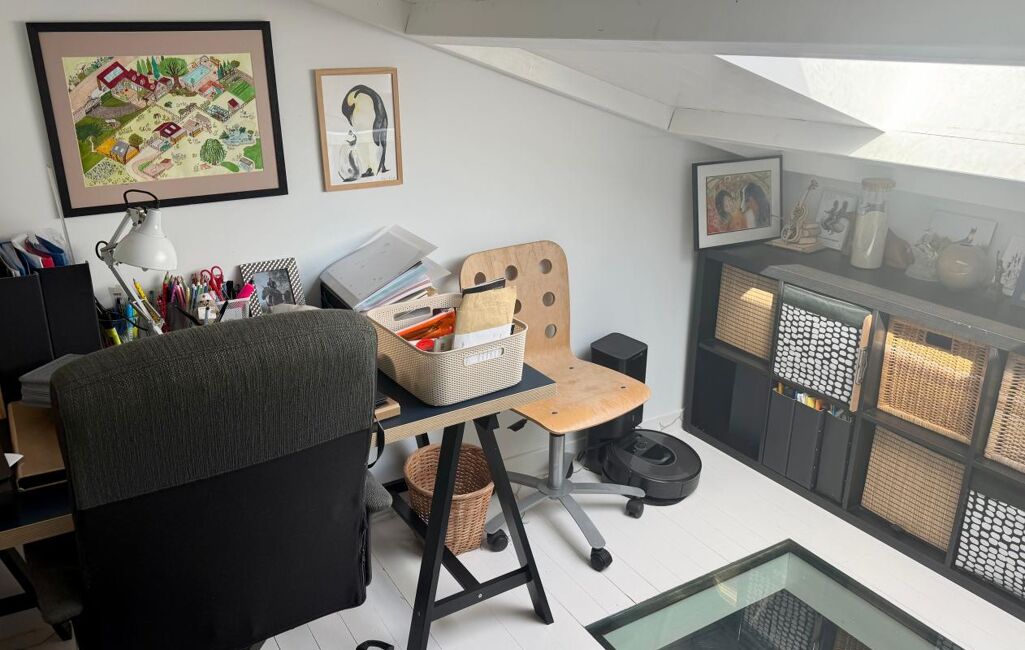 Elle offre une agréable pièce de vie avec cuisine ouverte, trois chambres avec rangements, une salle d'eau, un WC séparé ainsi qu'un espace bureau en mezzanine.