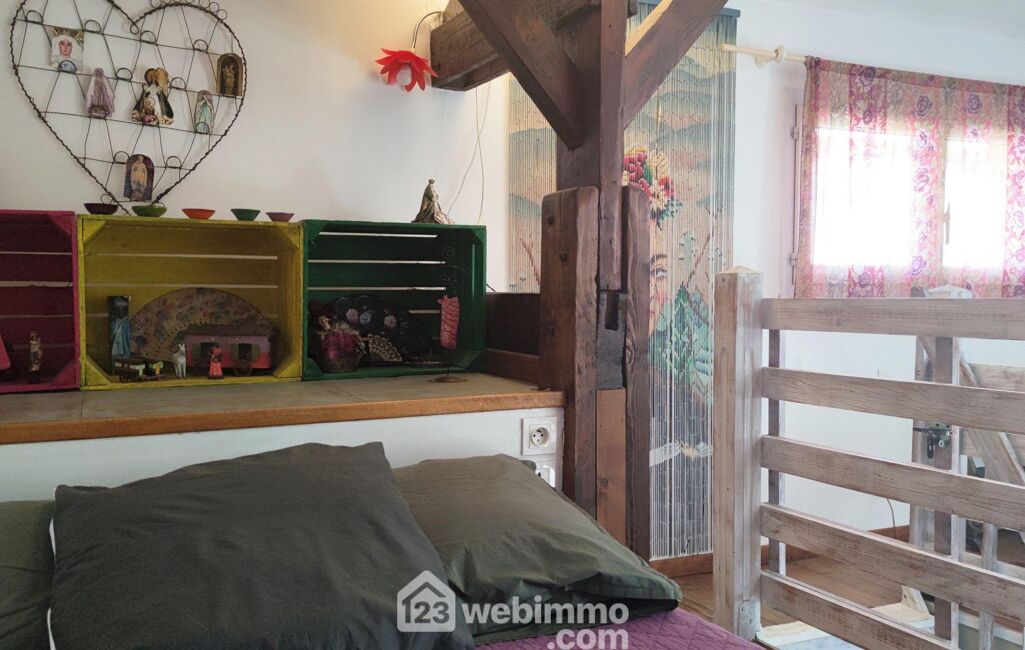 - Une chambre en mezzanine, optimisée et aménagée avec un lit en 140 cm et un lit en 90 cm.