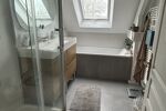 À l’étage, un grand espace actuellement utilisé comme salle de sport peut être aménagé selon vos besoins. Un couloir dessert quatre chambres ainsi qu’une salle d’eau récente, composée d’une douche et d’une baignoire, un WC séparé.