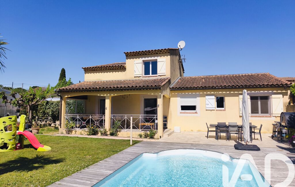 iad France - Olivier Zanarelli vous propose: Superbe maison refaite à neuf mitoyenne d'un côté en copropriété horizontale de 123m² + un garage de 29m² avec un cabanon, une piscine, 2 terrasses, terrain de boules, four à pizzas, 3 suites parentales, stationnement d'environ 4 véhicules, exposition SUD, proche des grands axes routiers, de belles prestations.