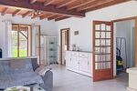 Une terrasse couverte plein sud invite à profiter du jardin et des longues soirées d’été .