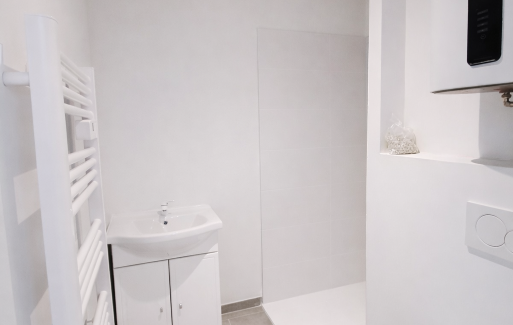 Cet appartement traversant se compose d’une chambre, d’une salle d’eau avec WC, ainsi que d’un séjour avec cuisine ouverte donnant directement sur une cour privative d’environ 20 m².
